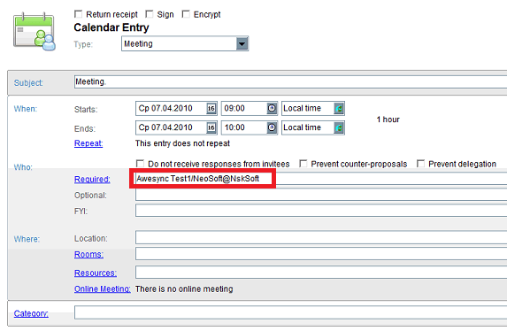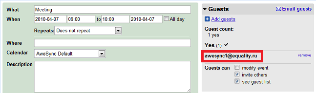 Sometimes we get complains from our users that “spam” has been sent to their invitees, while doing some manipulations with events synchronized by AweSync. The main “firewall” for preventing emailing is simply blocking invitees field from being synchronized.