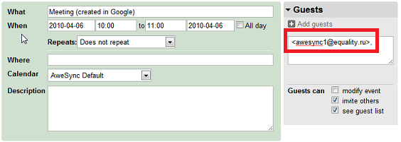 … and synchronize this event with Google: